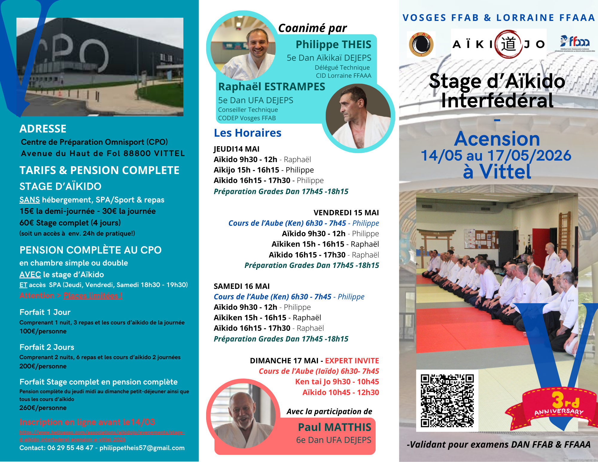 15 mars Stage privé Philippe Theis - Nancy Punch (54)Stage privé Philippe Theis - Nancy Punch (54) @ 09:30 - 11:30 à Dojo Punch Nancy|Stage PrivéEn savoir plus 21 mars Cours Enfants CID 2 - FlorangeCours Enfants CID 2 - Florange @ 14:00 - 16:30 à Dojo Florange|Stage enfants Stage PubliqueEn savoir plus 31 mars Cours interdépartemental 3 - Haselbourg (57)Cours interdépartemental 3 - Haselbourg (57) @ 19:45 - 21:30 à Dojo Haselbourg|Cours interdépartementalEn savoir plus 17 avril Stage privé Armes Philippe Theis – Montigny les Metz (57)Stage privé Armes Philippe Theis – Montigny les Metz (57) @ 19:00 - 22:00 à Dojo Montigny – CSAG|Stage PrivéEn savoir plus 25 avril Stage Sénior Aikitaiso - Heillecourt (54)Stage Sénior Aikitaiso - Heillecourt (54) @ 09:30 - 17:00 à Dojo Heillecourt|Stage séniorsEn savoir plus 25 avril Stage Aikido - AikibudoStage Aikido - Aikibudo @ 10:00 - 17:00|Stage interdisciplinesEn savoir plus 01 mai Stage Codep FFAB 88Stage Codep FFAB 88 @ 10:00 - 16:00|Stage PubliqueEn savoir plus 02 mai Stage privé Philippe Theis - Cornimont (88)Stage privé Philippe Theis - Cornimont (88) @ 09:00 - 11:30|Stage PrivéEn savoir plus 14 mai Stage interfédéral - Vittel (88)Stage interfédéral - Vittel (88) @ 09:30 - 12:30 à Dojo Vittel|Stage interfédéralEn savoir plus 27 mai Cours interdépartemental 4 - Varangéville (54)Cours interdépartemental 4 - Varangéville (54) @ 19:15 - 21:00 à Dojo Varangéville|Cours interdépartementalEn savoir plus 13 juin Passage de Grades 1er et 2e danPassage de Grades 1er et 2e dan @ 09:00 - 17:00 à Dojo Thionville|Passage de gradeEn savoir plus 13 juin Passage de Grades 3e et 4e danPassage de Grades 3e et 4e dan @ 09:00 - 17:00 à Dojo Thionville|Passage de gradeEn savoir plus